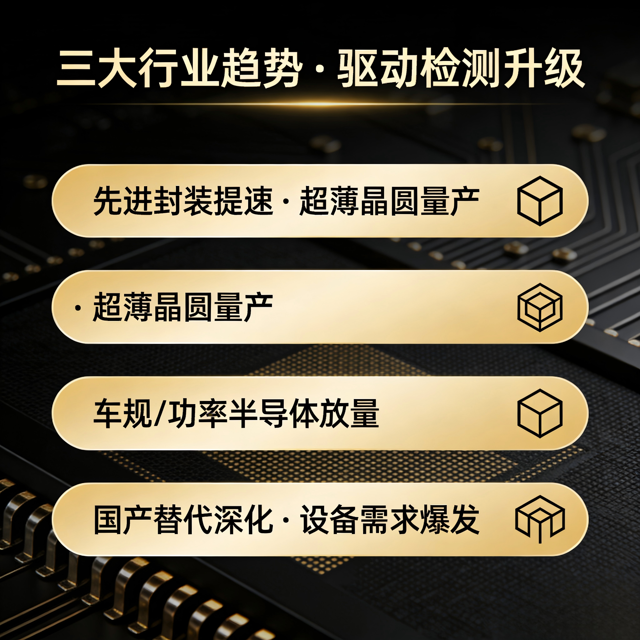 1.先进封装提速,超薄晶圆量产35μm 超薄晶圆规模化落地,Chiplet、2.5D/3D 封装普及,对截面金相、分层观察、键合质量检测提出更高要求。